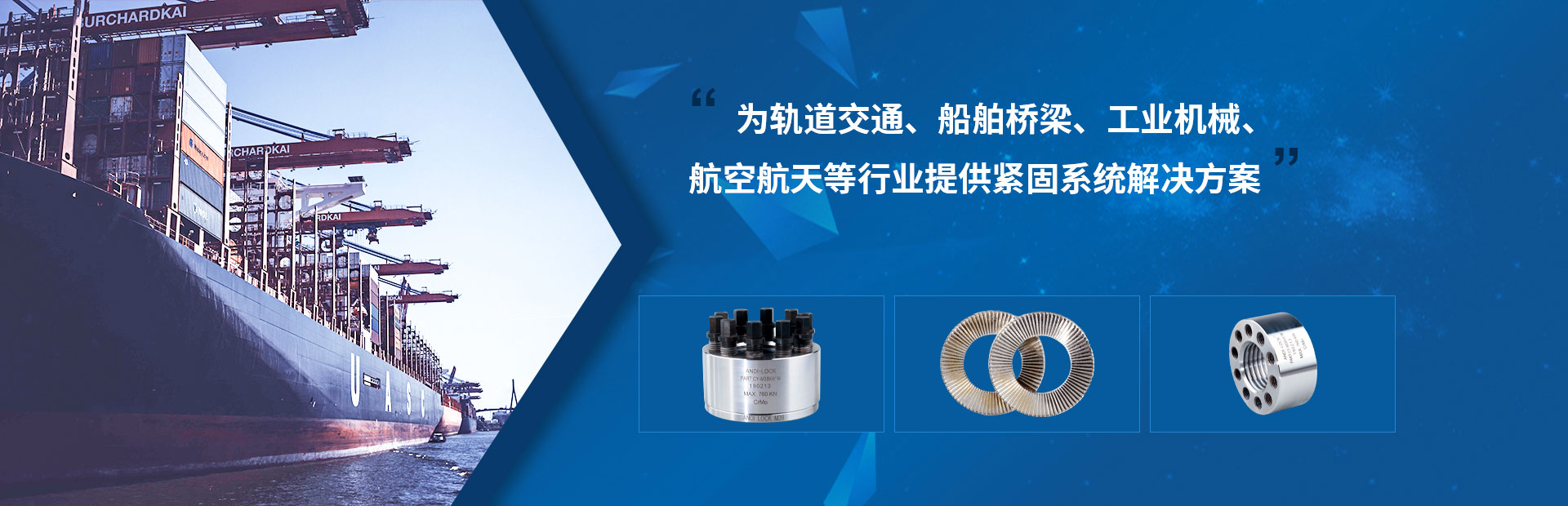 大連安迪機械設備有限公司位于美麗的濱海城市大連,是一個集科、工、貿(mào)為一體的全球性供應商,自公司1996年成立以來,一致奉行"以質量求生存、以科技求進步、以客戶求市場"的生產(chǎn)和經(jīng)營理念,公司自主研發(fā)、專業(yè)生產(chǎn)防松墊圈、止退墊圈、雙疊自鎖墊圈、din25201、高鐵聲屏障墊圈、超級螺栓,頂推螺母,多級頂推張緊器,螺母型張緊器等精密機械。并同時代理銷售國內(nèi)外各大知名品牌緊固件。